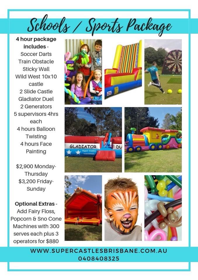Super Castles Australia can provide the ultimate entertainment for your next party or event. Super Castles has over 40 inflatables for hire with themes, sizes and styles to suit every occasion including Frozen, Minions, Toy Story, Disney Cars, Pirates, Princess, Super Heroes, Jungle & all you favorite Marvel Super heroes. We also hire adults jumping castles and have a Huge range of inflatable interactive games and obstacle courses available in Brisbane, Ipswich and the Gold Coast including gladiator duel, soccer darts & Sticky Walls