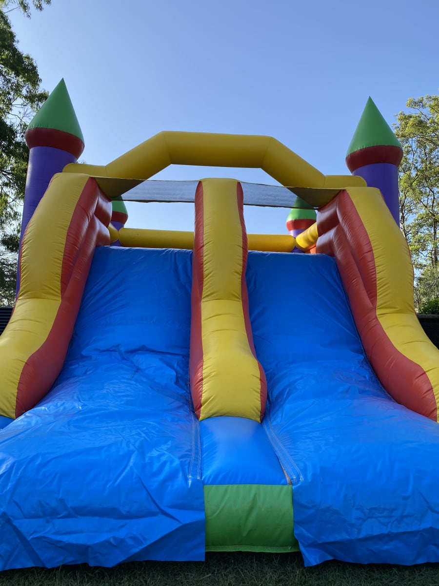 Our incredible mega slide has two different slides for you to use. Kids will clamber up to the top before sliding down and landing with a bounce on the inflatable slide's cushioned matting below.
