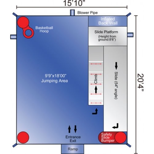 4 in 1 Combo, slide, basket ball hoop, jumping area & climb.