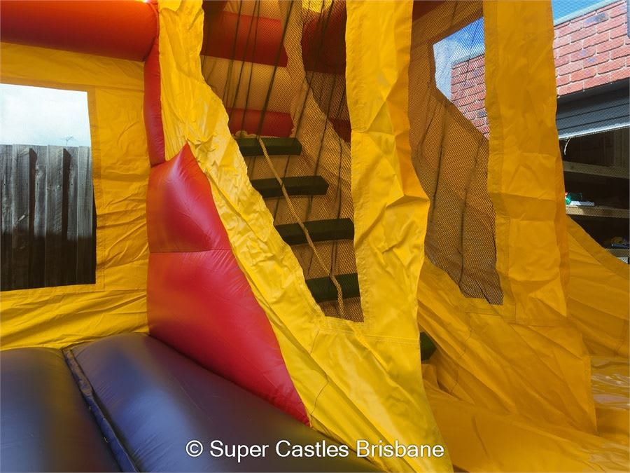 This castle is a combo with slide, basketball hoop, jumping area & climb to top of slide